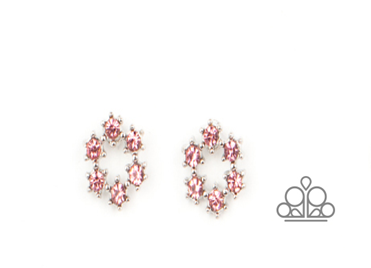 Dotted with dainty pink rhinestones. earrings attach to standard post fittings